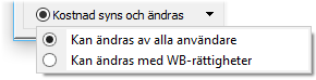Om inställningen används och produkten inte är märkt med Kostnad från produkt, kan alltså inloggad användare med WB-rättigheter ändra föreslagen kostnad, men övriga användare kan då alltså inte påverka den.