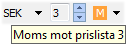 Genom att ange numret på annan prislista (1 till 9), kan också en annan grundprislista exklusive moms användas för att lägga på momsen. |
