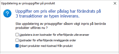 Produktens kostnad vid inventeringstillfället registreras också på transaktioner av typen Inventering.