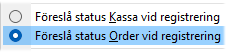 Användare som avser att i första hand använda Kassa som en registrering av vanliga kundorder som sedan kan öppnas i rutinen Order / faktura bör välja alternativet Föreslå status Order i menyn Alternativ.
