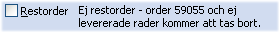 Notera att om hela ordern är av status Order, d.v.s. att inget på den befintliga ordern ska betalas eller gå på följesedel, kommer ej heller restorderförfarandet att träda i kraft, utan hela ordern ligger kvar orörd efter att knappen F7 - Order har valts.