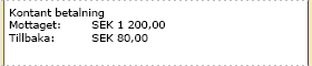 Detaljerad information visas i kvittots betalningsdel i de fall man tar betalt i utländsk valuta såsom t.ex. euro. Normalt visas mottaget belopp och belopp tillbaka vid kontant betalning i systemvalutan (SEK).