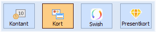 Det finns också möjlighet att lägga upp fler knappar med ytterligare betalningssätt. Knapparna gör det enklare att välja andra vanligt förekommande betalningssätt i verksamheten, såsom t.ex. Swish eller Presentkort.