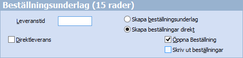 Leveranstid kan anges för transaktionerna i beställningsunderlaget och denna anges då inom det intervall som är angivet för leveranstid i Inställningar Produkter.