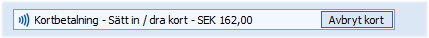 Knappen Kort används på motsvarande sätt för att istället växla till kortbetalning i dialogen. Om flera olika typer av betalningssätt med kort finns upplagda, väljs dessa då istället i listan med möjliga betalningssätt. Använd funktionstangenten F5 för att välja betalningssätt Kort från tangentbordet. |