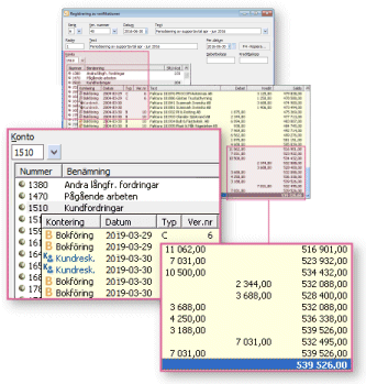 bokföringsunderlaget öppnas. Via sammandraget kan man sedan