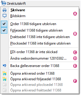 Samma meny som tidigare har givit möjlighet att ändra utskriftsläge samt ändra status för tidigare utskrivna blanketter, ger nu även möjlighet att ändra status för EDI är skickad. |