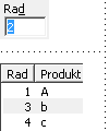 Eventuella befintliga efterföljande rader i skärmlistan kommer att förskjutas med motsvarande antal positioner. Figuren. En rad har infogats mellan rad 1 och 2, rader fr.o.m. 2 har då förskjutits med en position. En strukturprodukt med 5 detaljer registreras därefter på rad 2, och efterföljande detaljer förskjuts då ytterligare 5 positioner. |