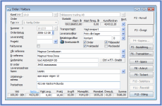 Registrering av kundorder Eftersom många order består av ett större antal grunduppgifter är fönstret uppdelat på två flikar, <F2 Huvud> och <F3 Övrigt>. Under fliken Huvud finns de viktigaste uppgifterna om kunden och själva ordern. |