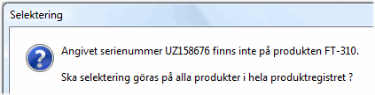 På detta sätt kan man alltså hitta serienumret även på andra produkter genom att utföra selektering på en produkt märkt för serienummer. Eftersom funktionen då kan lista andra produkter en den som för tillfället är vald på produktkortet, bör då t.ex. Produktnr eller Benämning också väljas in i skärmlistan.