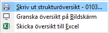 Genom att först välja Översikt och sedan knappen Skriv ut, kan strukturen i alla nivåer skrivas till en skrivare som väljs i efterföljande dialog. |