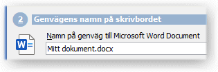 Rubriken ovanför genvägens namn indikerar vilken typ av fil som har valts, t.ex. Program eller Word-dokument.