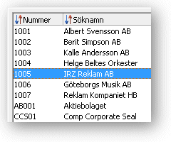 Genom att använda tangenter i samband med sortering kan en förekomst snabbt hittas i en söklista med stort innehåll. Söklistan öppnas normalt sorterad på nummer, eller t.ex. Söknamn om man har valt pil-ner vid fältet Söknamn. Om ett begrepp har angivits i det aktuella fältet, visas den första förekomsten som matchar eventuellt angivet sökbegrepp som markerad rad i listan.