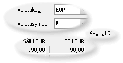 Normalt sker redovisning och omräkning vid utrikes handel till SEK - svenska kronor. Det finns även möjlighet att använda annan systemvaluta, såsom exempelvis EUR (euro). Systemvalutan ska liksom andra valutor alltid finnas i valutatabellen.
