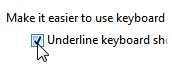 I avsnittet Make it easier to use Keyboard shortcuts, kryssa för: Underline Keyboard shortcuts and access keys. |
