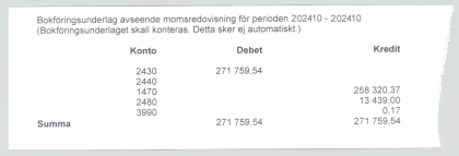Bokföringsunderlag avseende momsredovisning |