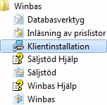 Vid uppgradering kan Klientinstallation istället startas direkt från Winbas programgrupp. Använd startmenyn och klicka på Klientinstallation i gruppen Winbas för att starta installationen på den aktuella klienten.