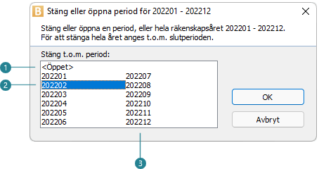 Genom att stänga ett räkenskapsår förhindras registrering på året när det är avslutat och bokslutet är genomfört. Det är också möjligt att succesivt stänga ett år periodvis, samtidigt som kanske tidigare år fortfarande är öppet i sista månaden för bokslutstransaktioner.