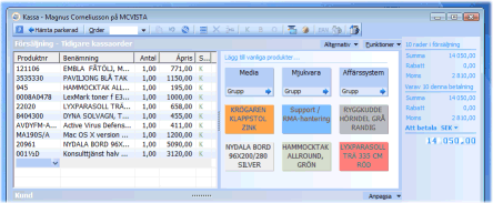 Detta för att lättare kunna välja den på skärmen vid avslutande av köpet när tangentbord och mus i normalfallet inte används vid den löpande registreringen. Knappens storlek kommer då istället att motsvara storleken på snabbknapparna för grupperna och produkterna. |