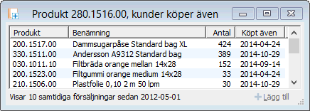 Ett klassiskt exempel på användning av funktionen kan vara att man erbjuder kunden dammsugarpåsar vid köp av dammsugare. När en produkt har registrerats i t.ex. Kassa eller Order / faktura kan man sedan använda knappen eller dubbelklicka på raden för att registrera in produkten på ordern. Det är och möjligt dra och släppa produkten in i den aktuella registreringsbilden.