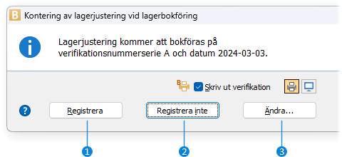 Registrera inte betyder att ingen verifikation kommer att registreras. Kontering kommer inte att utföras och måste då istället ske manuellt vid ett senare tillfälle.