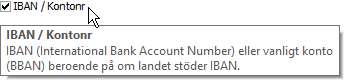 IBAN (International Bank Account Number) eller vanligt konto (BBAN) beroende på om landet stöder IBAN. |