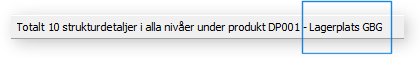 Knappen Strukturöversikt visas på skärmen när en strukturprodukt har valts i produktkortet. När knappen används visas översikten t.ex. med disponibelt antal för alla ingående detaljer i strukturen.