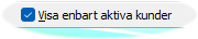 Med alternativet Visa enbart aktiva kunder kan man vid detta regelverk direkt växla mellan alla kunder och enbart aktiva kunder, och då välja att normalt inte visa dem i kundkortet - och istället ta fram inaktiva kunder vid behov. |
